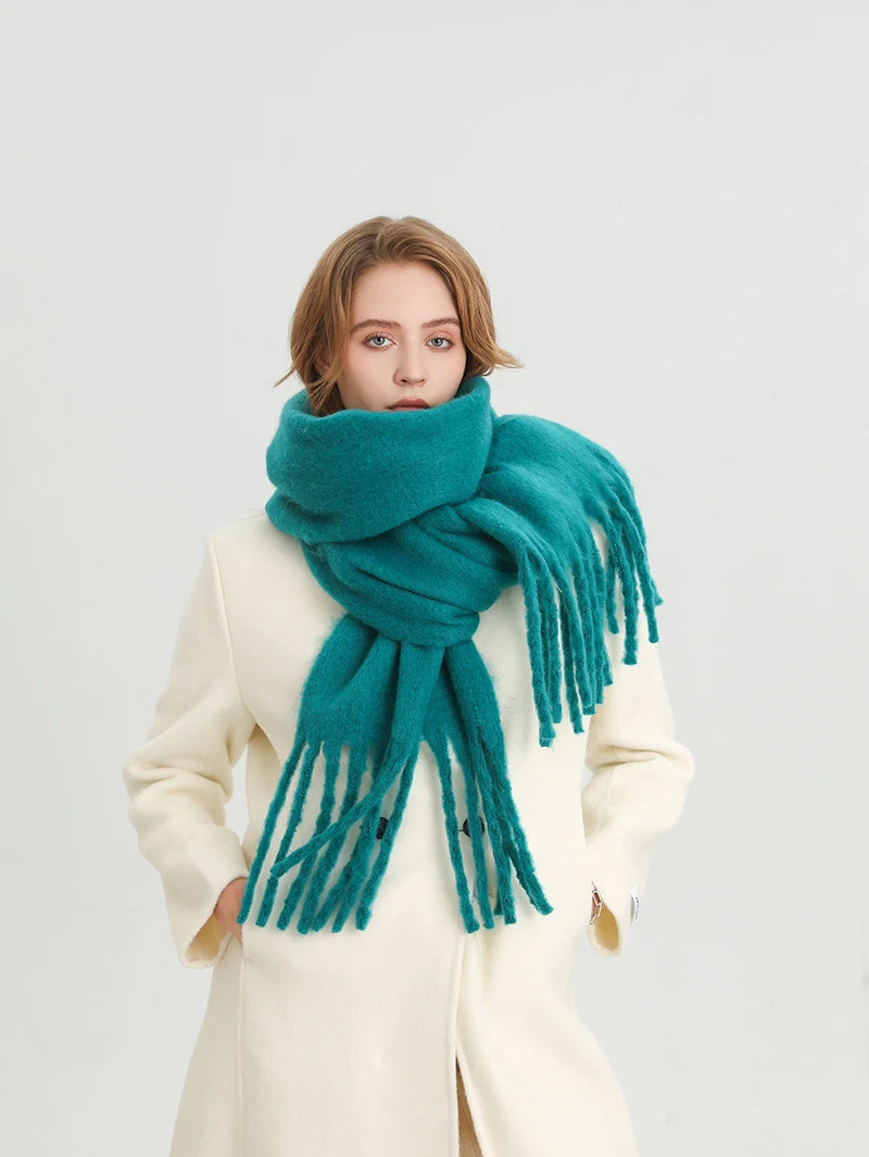 Woven from a luxe, ultra-soft polyester that mimics the plush touch of cashmere, this oversized scarf wraps you in warmth without feeling heavy. Whether you're strolling through the city, layering up for work, or heading to a weekend getaway, this piece keeps you cozy while adding effortless chic to every outfit.