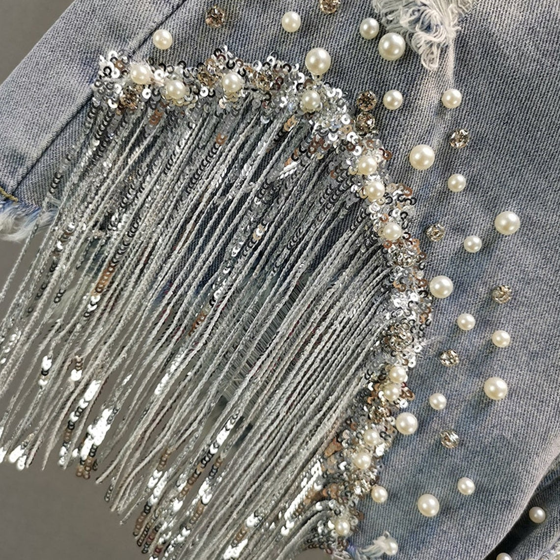 Luxury Rhinestone Tasseled Denim Shorts (Belt Not Included)