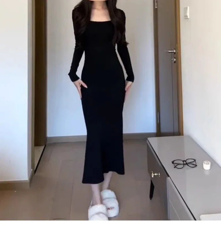 Understated, sculptural, and endlessly versatile — The Vivienne Dress is your quiet statement in black. Cut in a refined stretch jersey, this piece contours the figure with elegant restraint, offering a clean silhouette anchored by a distinctive square neckline.
